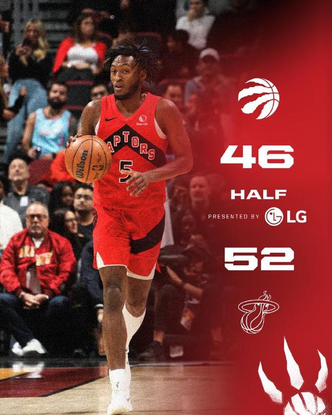 莺歌28+5+5猛龙逆转送热火5连败 热巴20+10约维奇重摔伤退